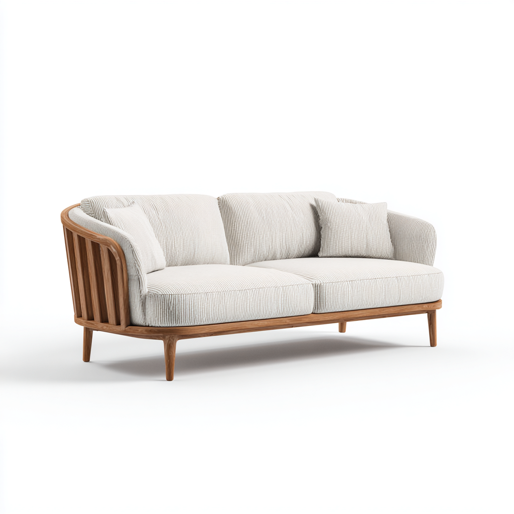 Divano da esterno Legno-Tessuto 180x85x80 cm - Beige-Legno naturale - Design moderno