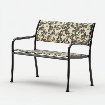 La struttura è realizzata in metallo verniciato nero, mentre la seduta e lo schienale presentano una superficie con fantasia floreale resistente all'uso quotidiano.